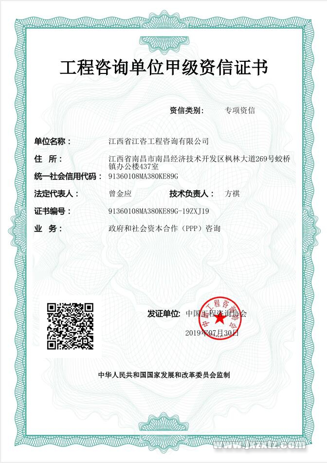 工程咨询单位甲级资信证书(PPP专项资信)