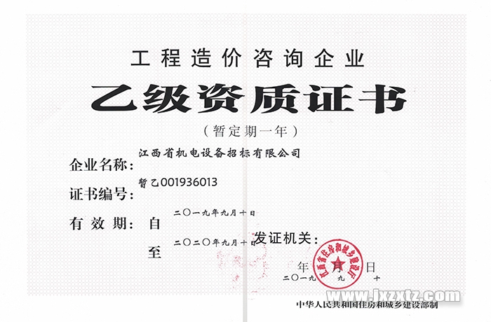工程造价咨询企业乙级资质证书